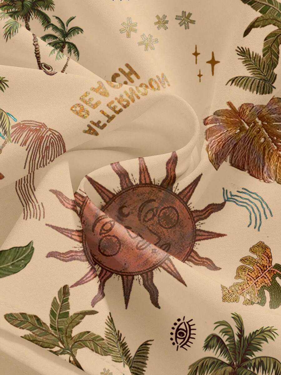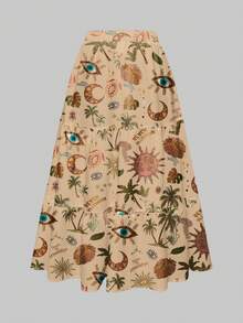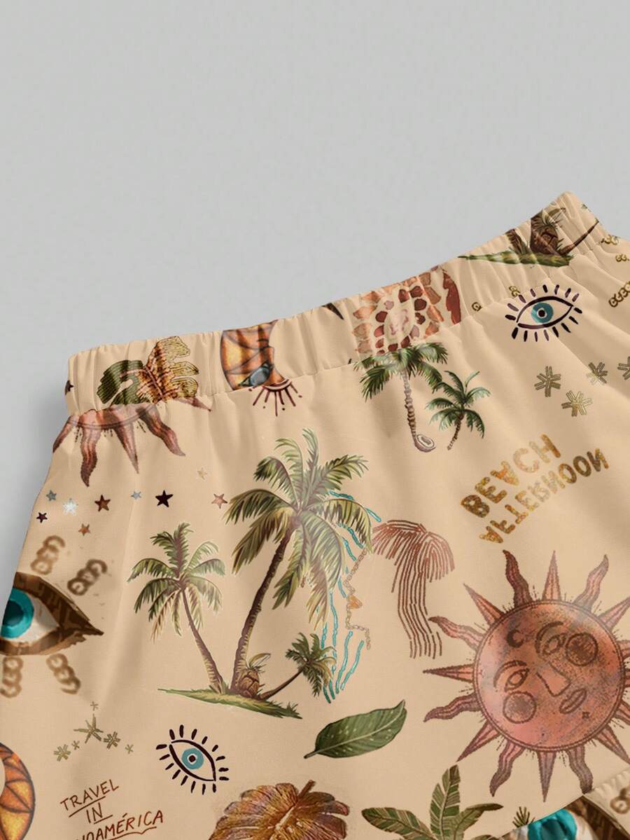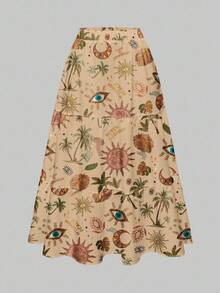 Fairycore Falda de vacaciones para mujer de 3 capas, suelta, con estampado de árbol de coco y ojo en color beige misterioso