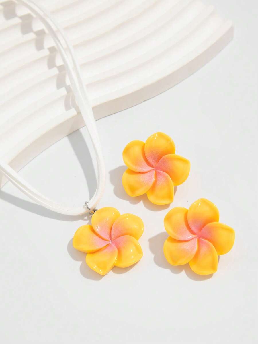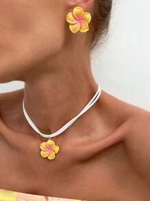 Fairycore Set de 3 piezas de collar y pendientes con estilo bohemio y diseño floral sencillo