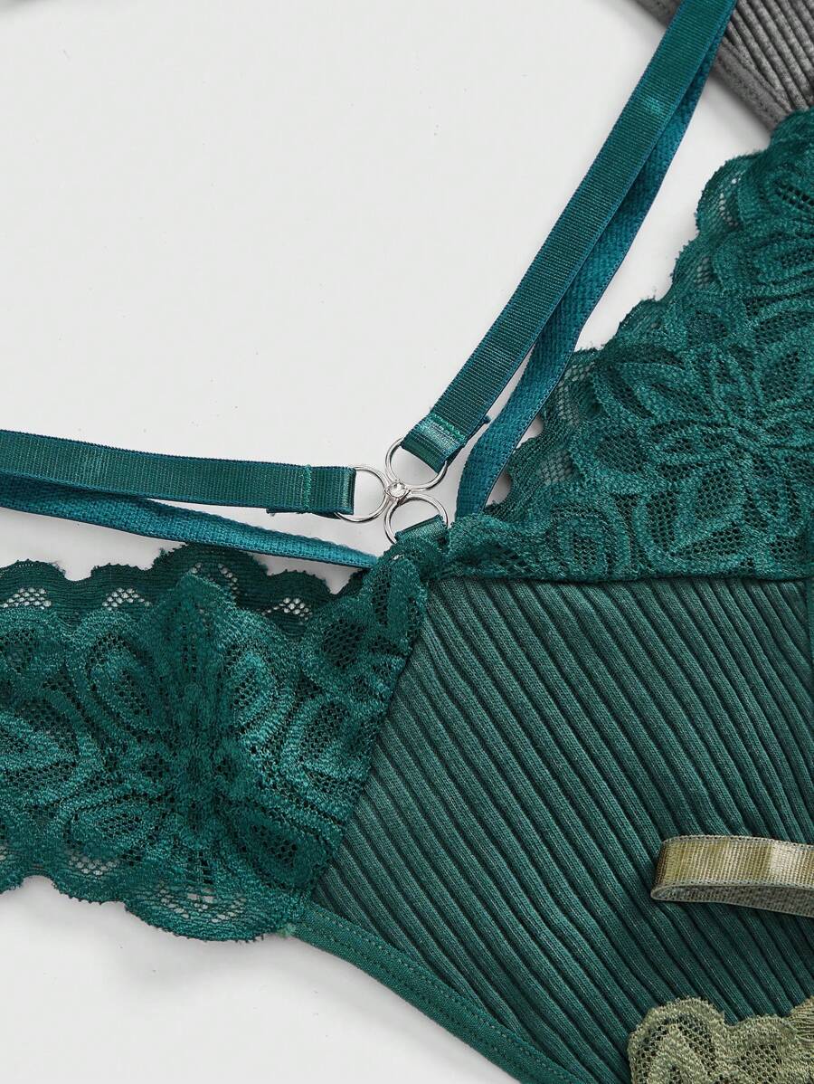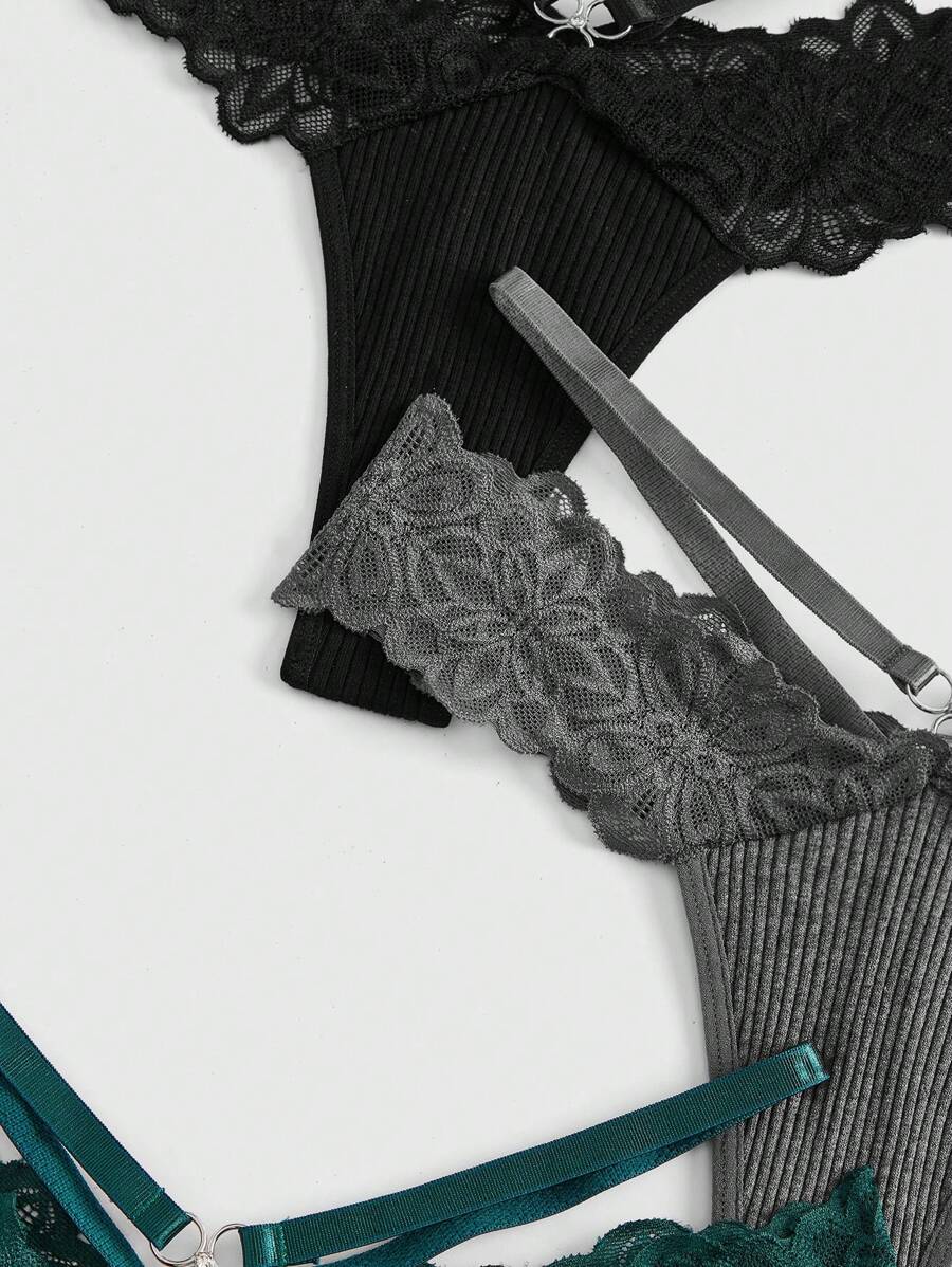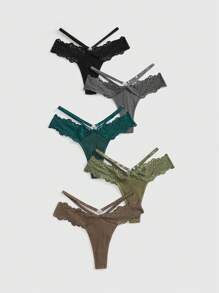 Fairycore Set de 5 piezas de tanga para mujer con textura de costilla y con ribete de encaje en estilo de hada