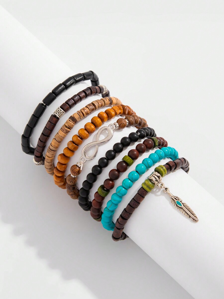 Fairycore Set de 9 piezas Brazalete vintage bohemio con cuentas de turquesa y concha de coco, joyería de estilo retro, regalo afortunado para amigos