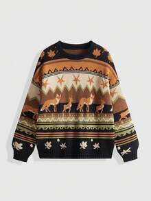 Fairycore Suéter de cuello redondo casual versátil de manga larga con estampado total