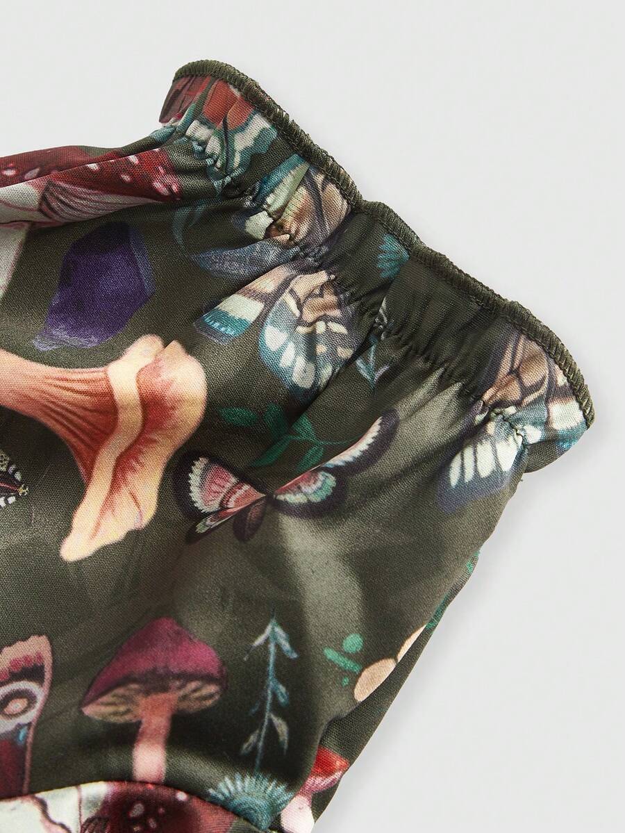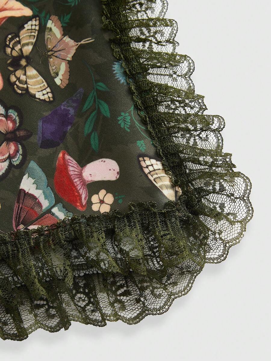 Fairycore Vestido con estampado de mariposa de hombros descubiertos con encaje en contraste bajo hanky