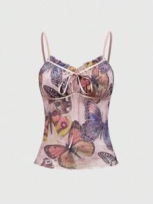 Fairycore Camiseta de tirantes con estampado de mariposa para mujer