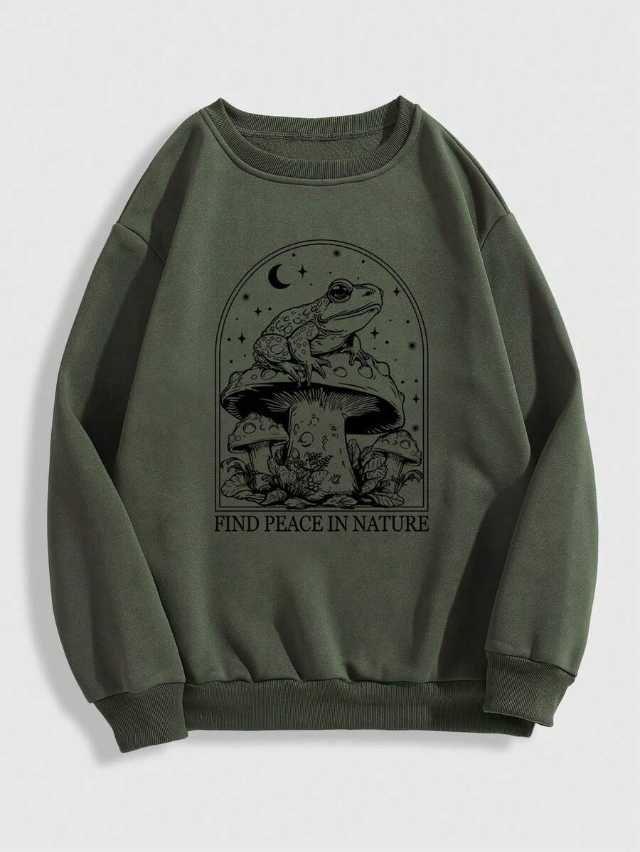 Fairycore Sudadera Con Cuello Redondo Y Estampado De Dibujos Animados
