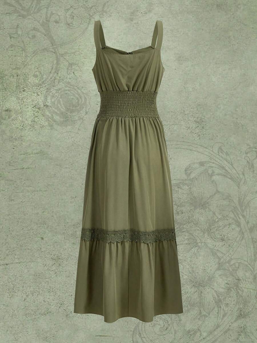 Fairycore Vestido de tirantes con encaje en contraste con fruncido con cordón