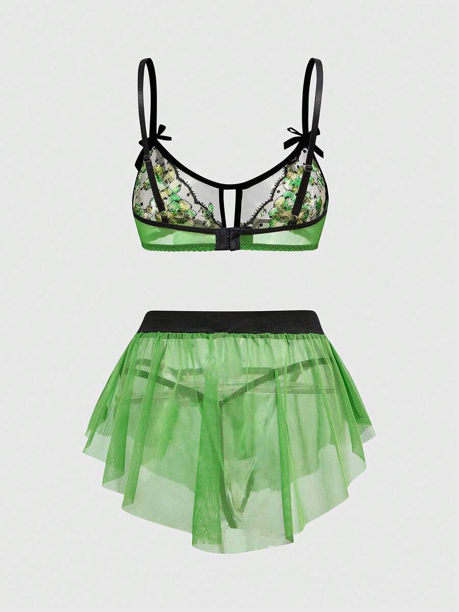 Fairycore Elegante conjunto de lencería inalámbrico y sexy con bordado floral