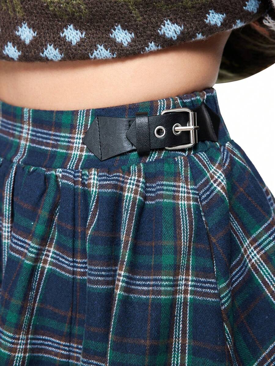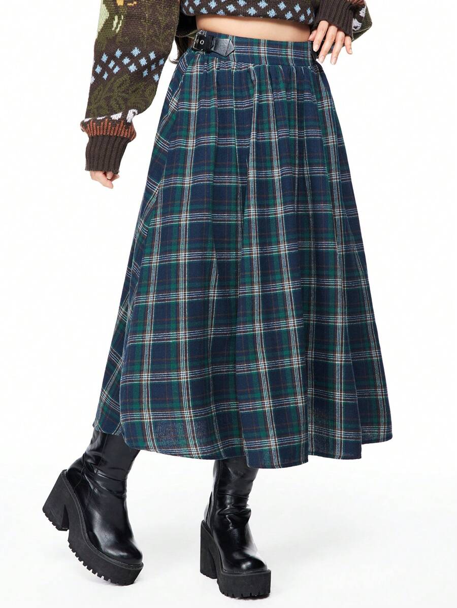 Falda con abertura en la Bottom, con botones frontales y estampado de cuadros en estilo vintage fairycore para mujeres