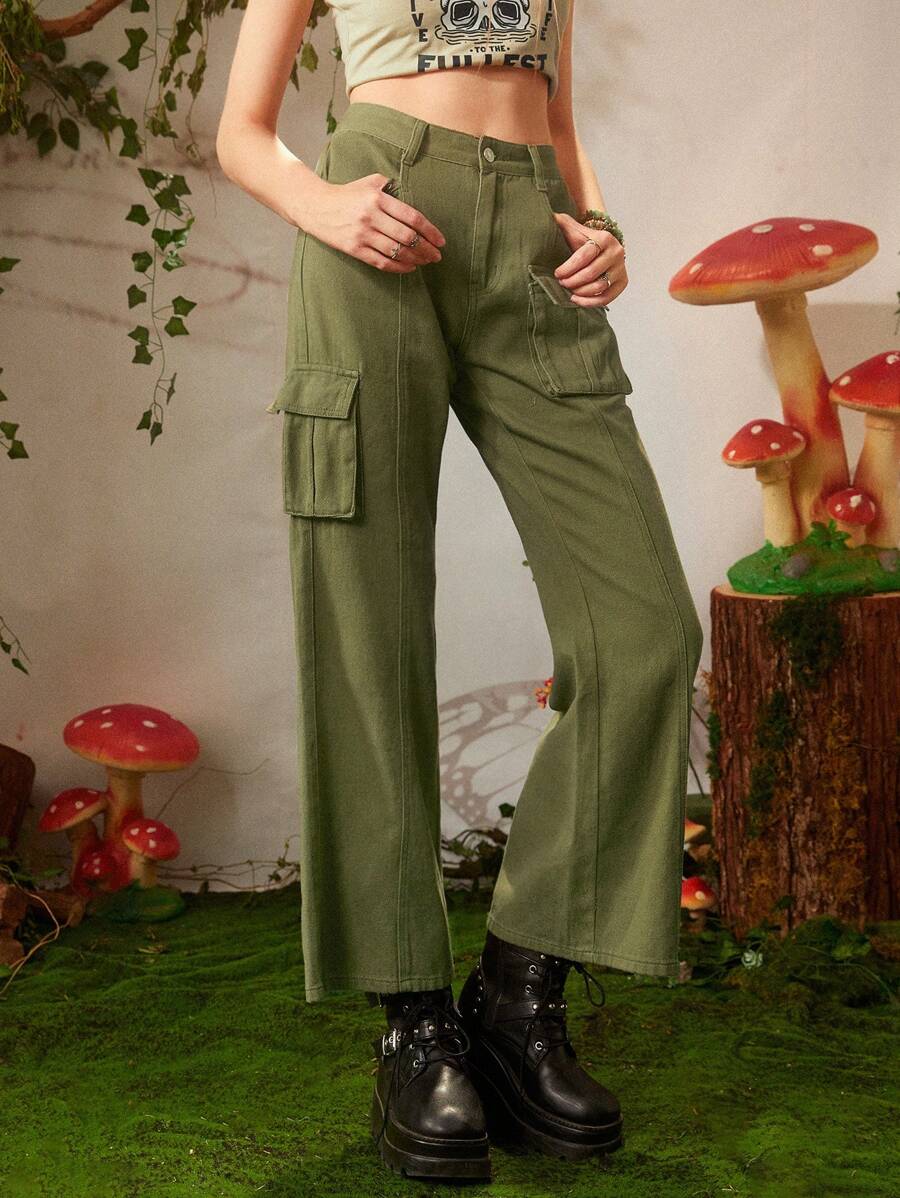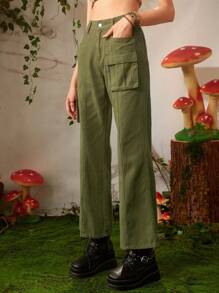 Fairycore Jeans de pierna amplia con bolsillo con solapa