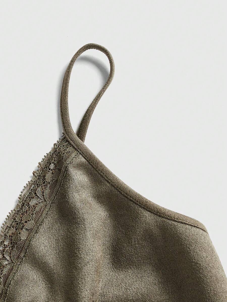 Fairycore Top de tirantes con bordado floral ribete con encaje
