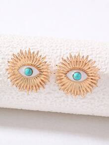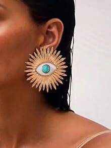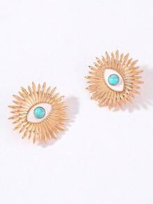 Fairycore Pendientes Redondos De Turquesa, Girasol Y Mal De Ojo Con Goteo De Aceite Dorado Y Azul