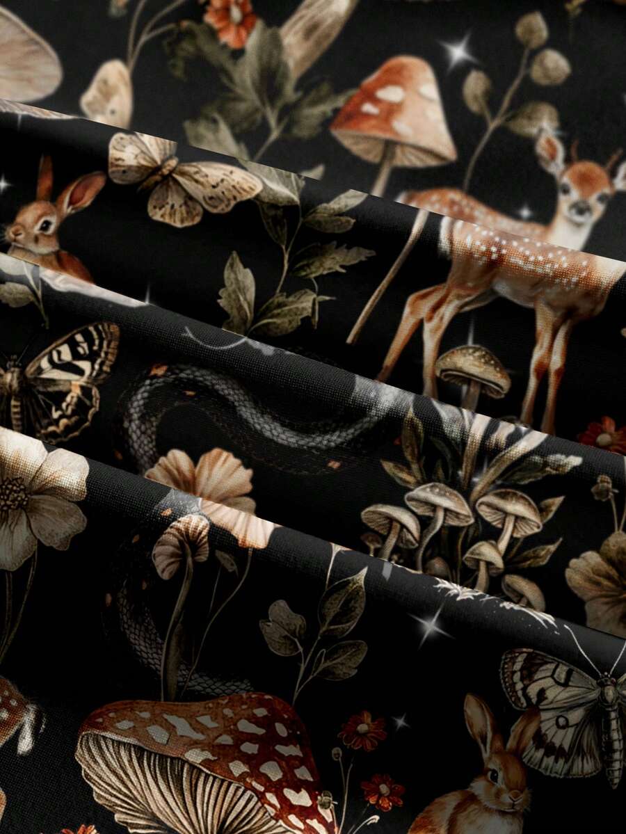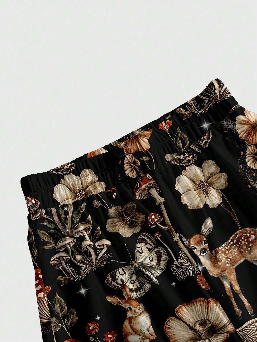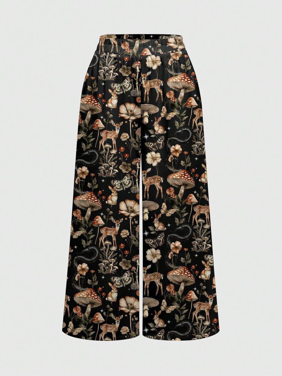 Fairycore Pantalones holgados de estilo gótico con estampado de bosque de setas vintage bohemio hippie para mujer