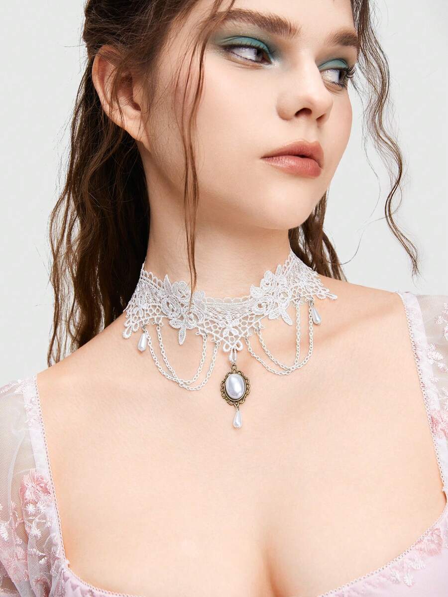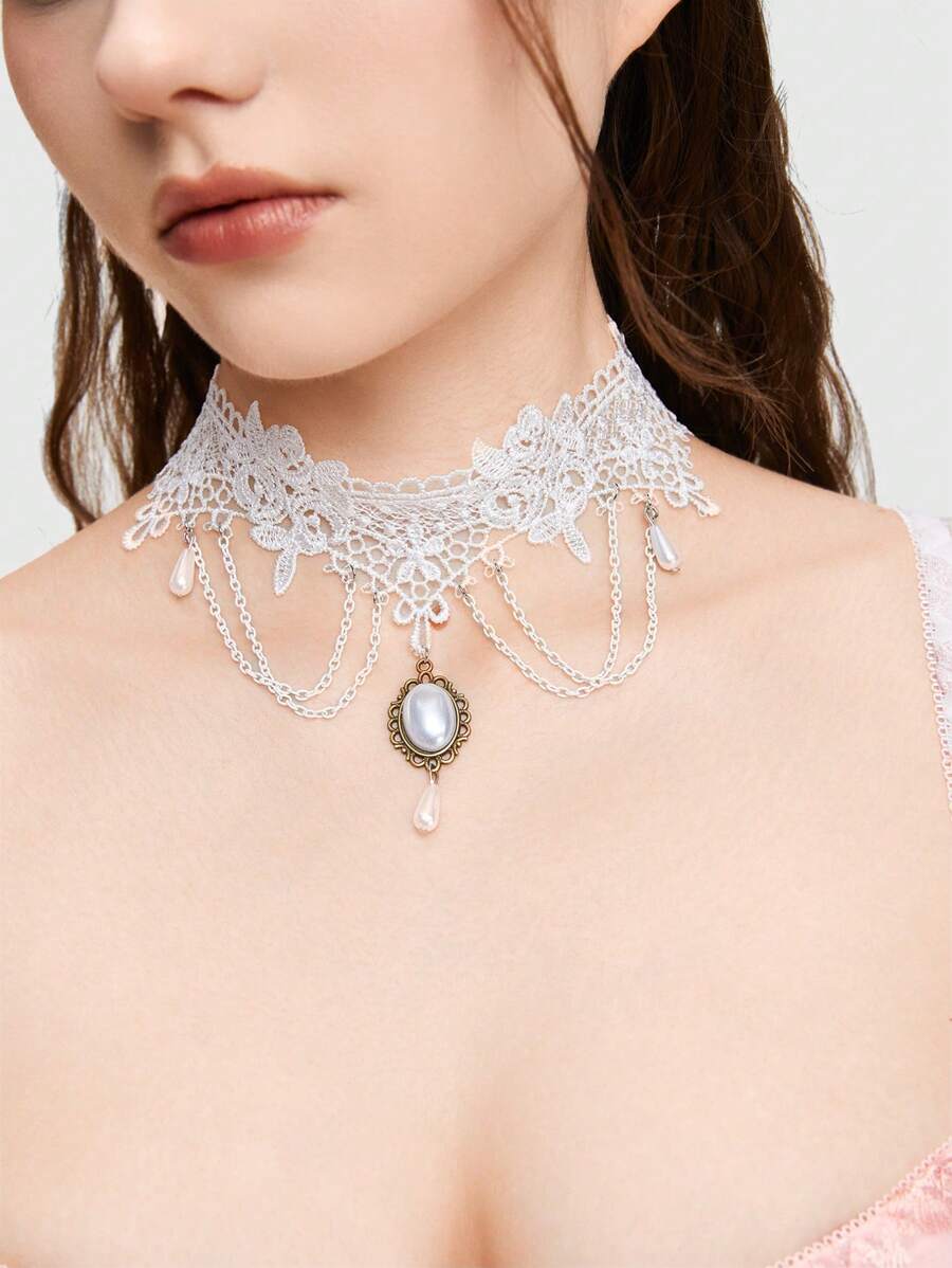Fairycore Collar De Gargantilla De Encaje Con Colgante De Cadena