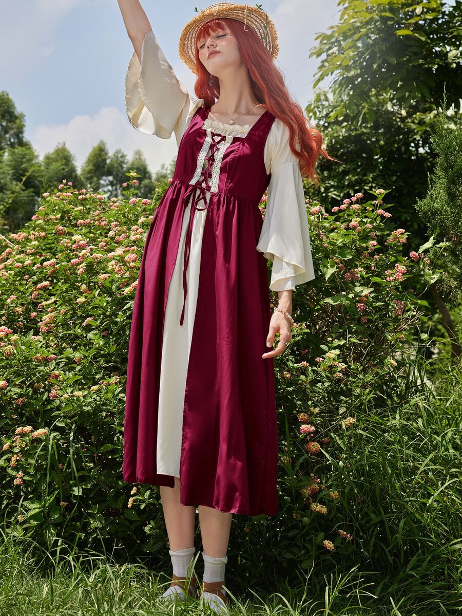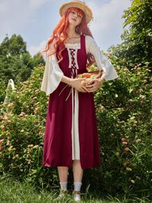 Fairycore Vestido overol con cordón delantero sin camisa