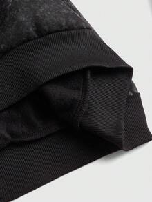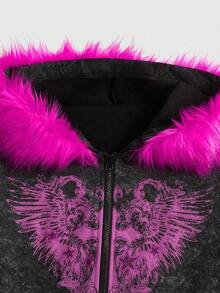 Fairycore Sudadera versátil con cuello de felpa con piedras de imitación y estampado de flor de lirio, de manga larga y efecto desgastado