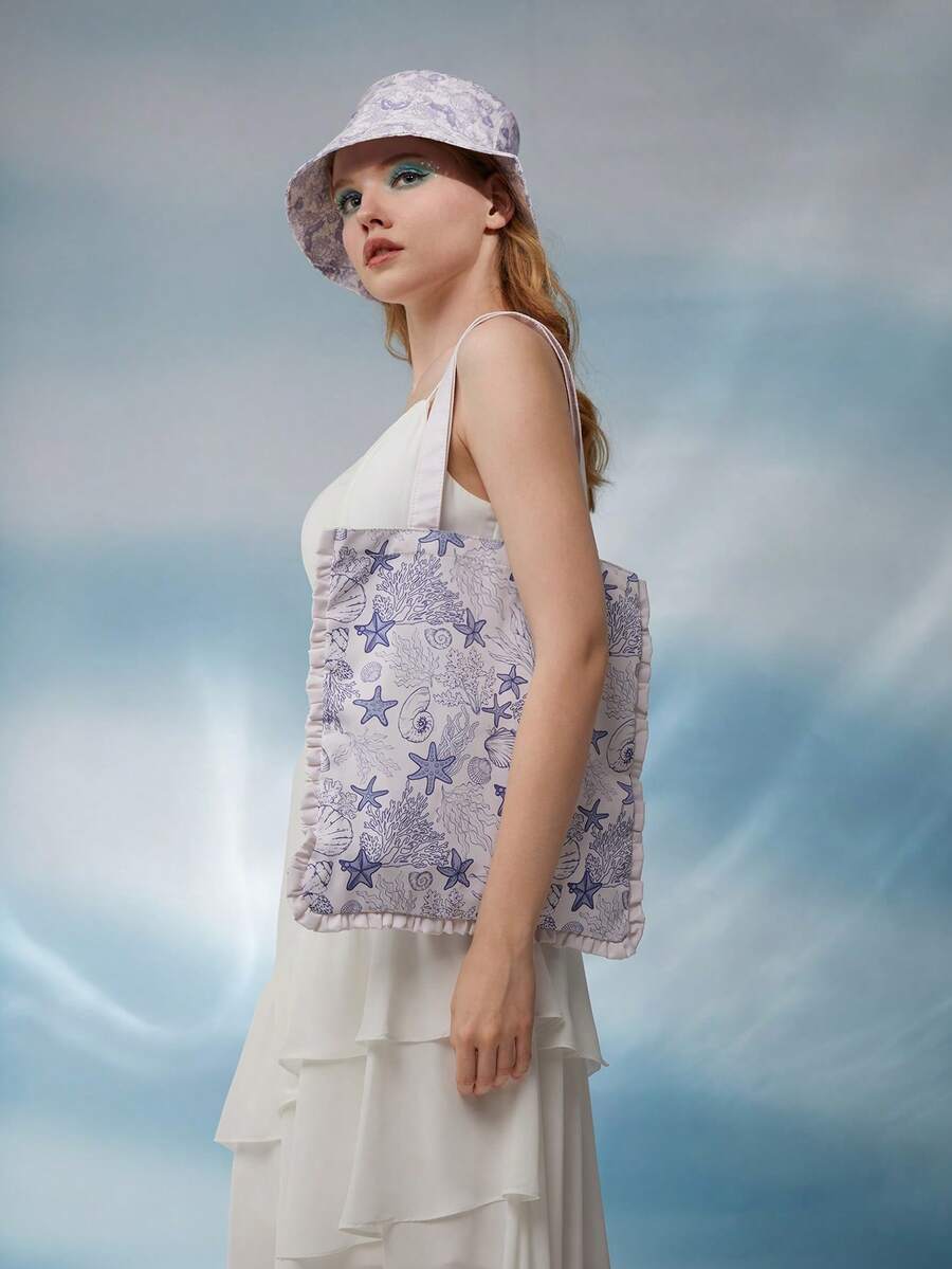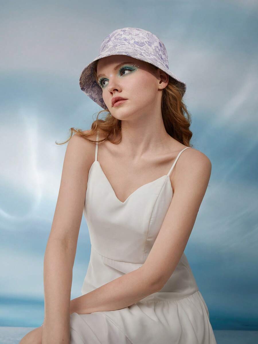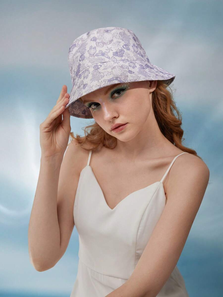 Fairycore Sirena 1 sombrero de pescador informal con estampado de mariposa y concha para mujer para la vida diaria