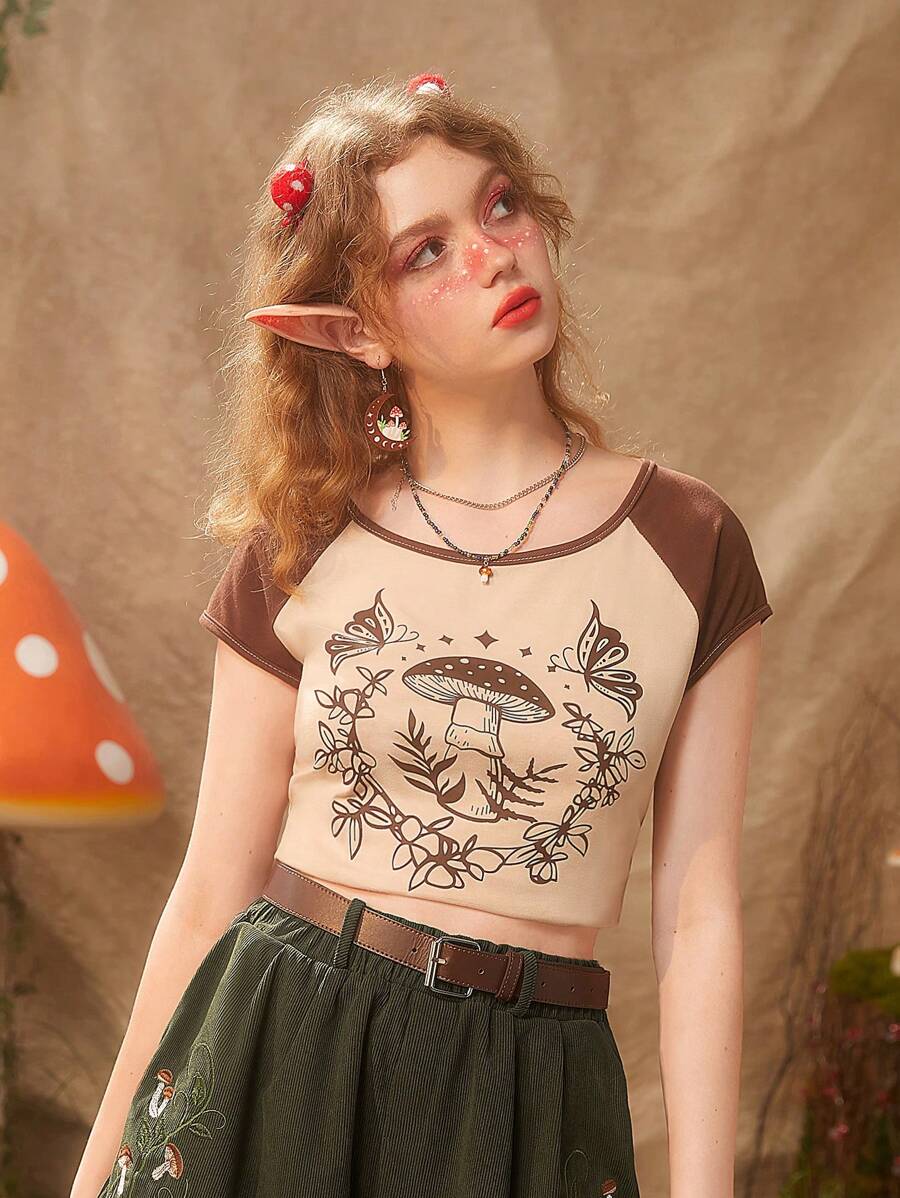 Fairycore Pantalones Cortos de Mujer Cinturón Bordado Bolsillo Plantas Casual