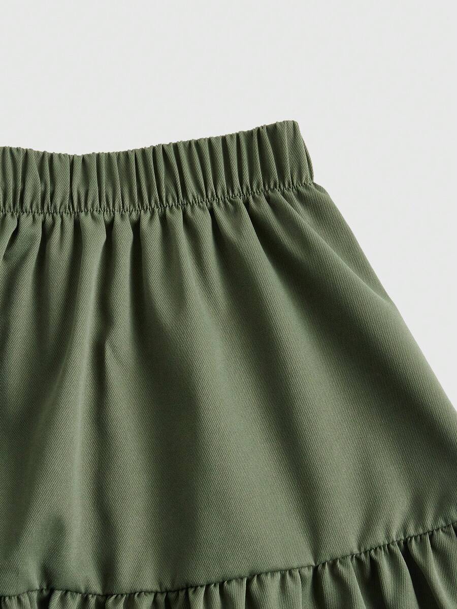 Fairycore Falda con bordado de seta con encaje en contraste bajo con fruncido