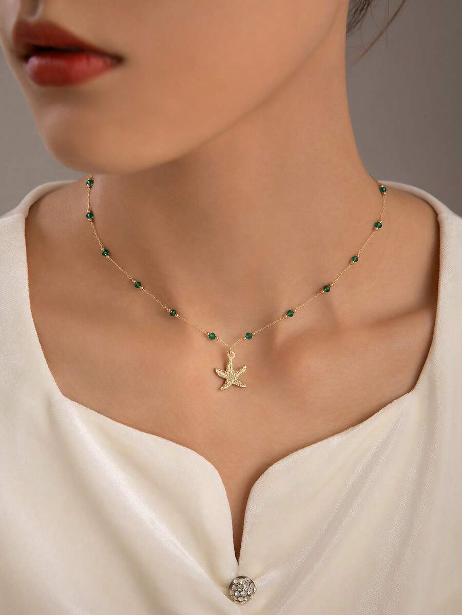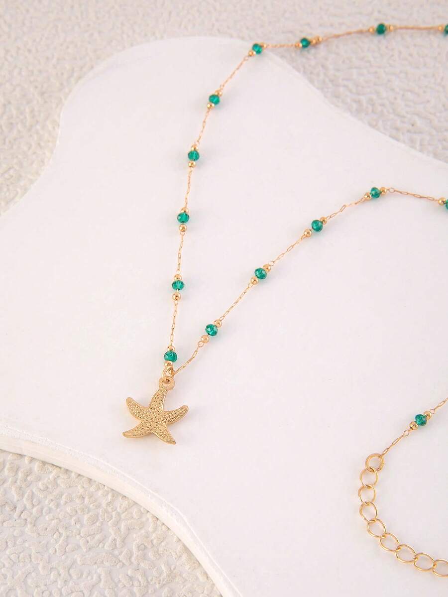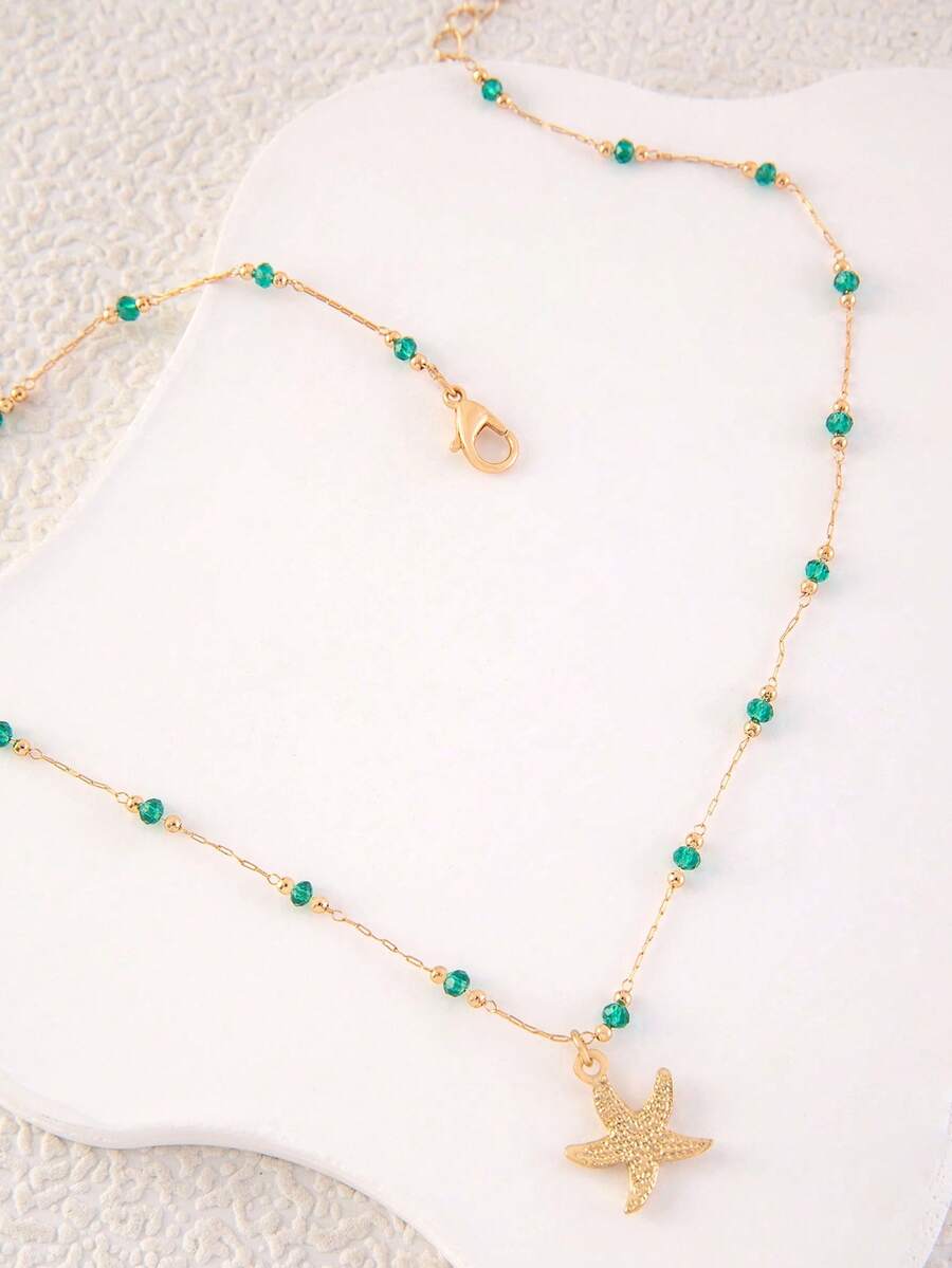 Fairycore Collar con dije de estrella de mar para mujer, decoración de cuentas de aleación de Zinc a la moda, para decoración diaria, 1 pieza