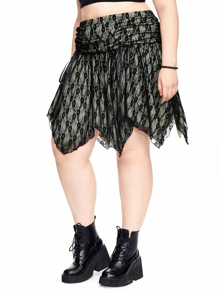 Fairycore Falda retro asimétrica de encaje de talla grande