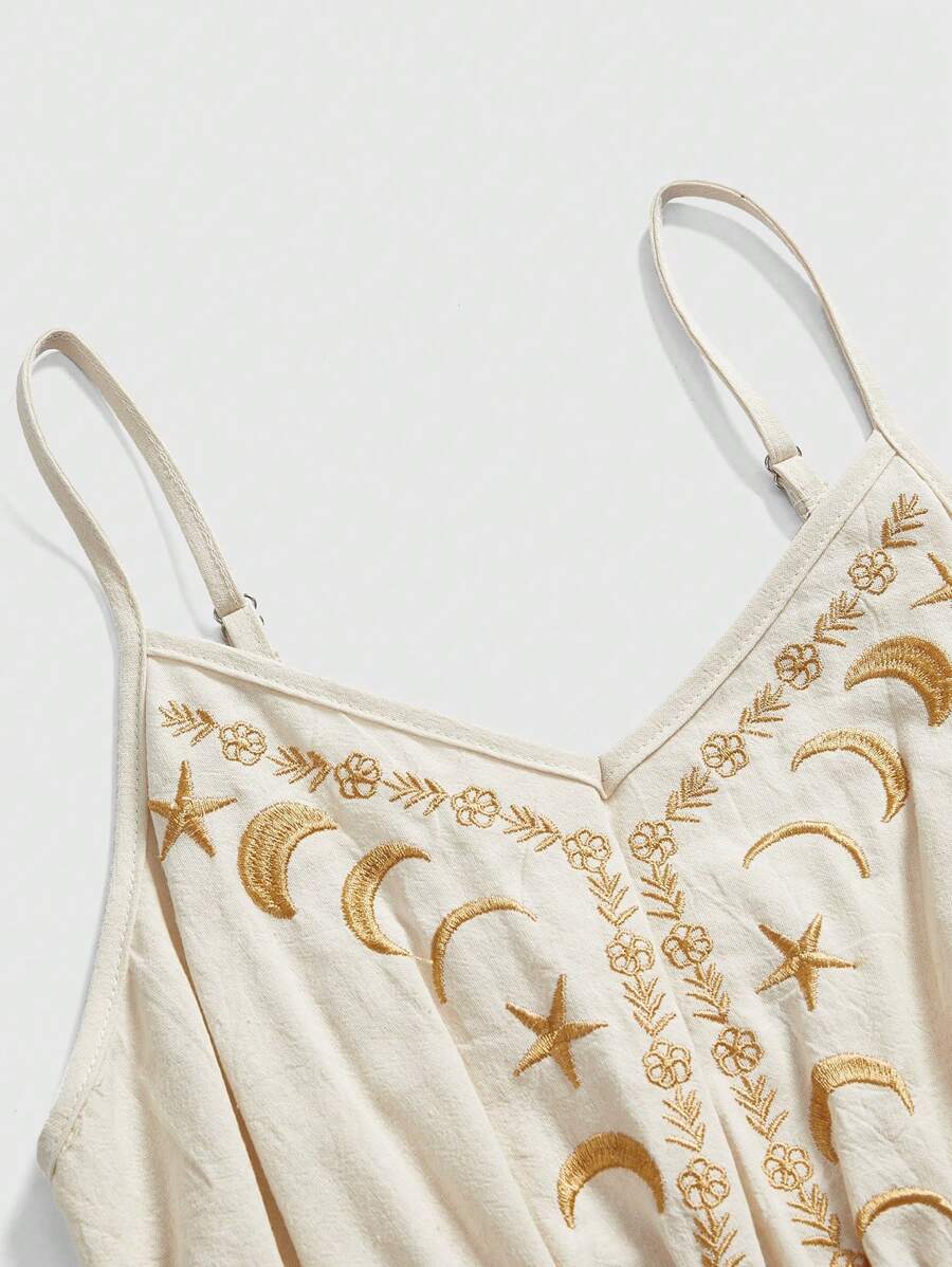 Fairycore Vestido maxi de línea A con bordados de luna y sol para mujeres de talla grande, informal y perfecto para vacaciones