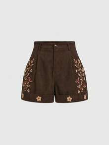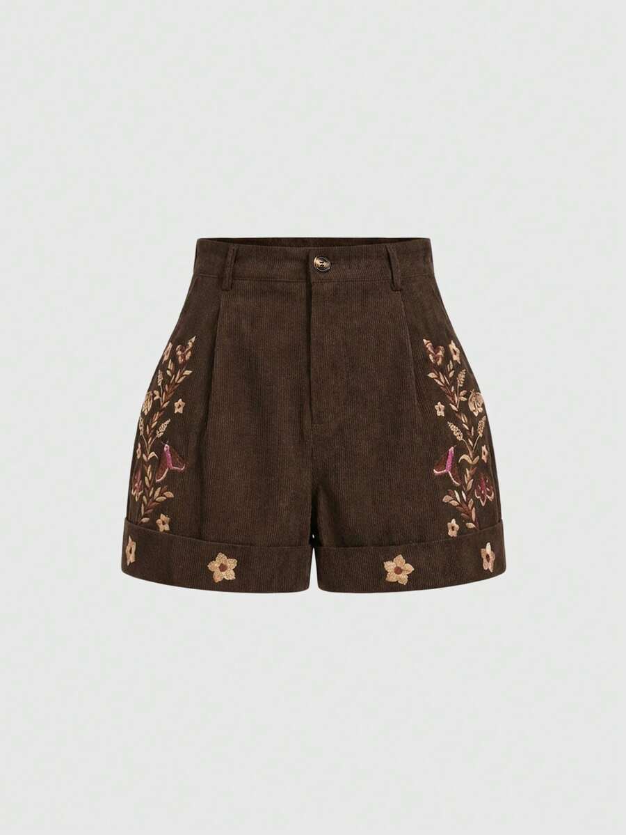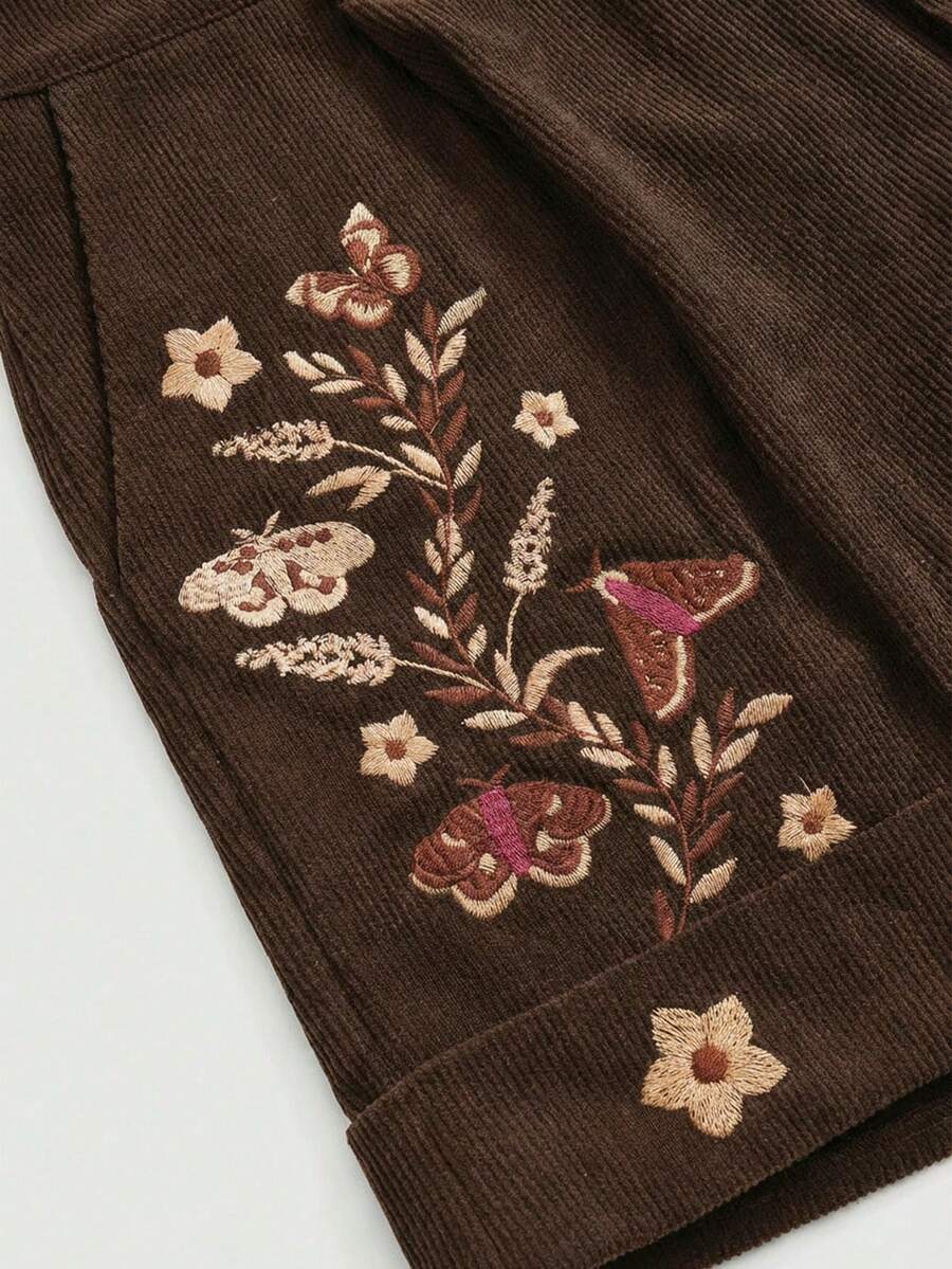 Fairycore Pantalones cortos de mujer talla grande de tela de pana con bordado de mariposa, versátiles para otoño/invierno