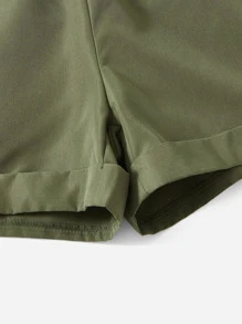 Shorts de lunares con parche de bolsillo de cintura con volante