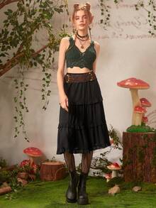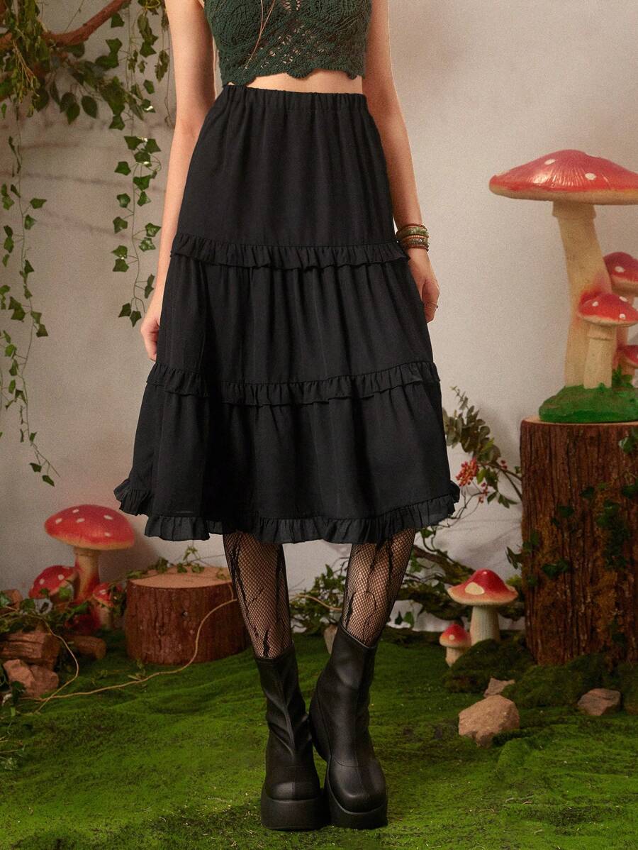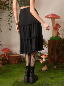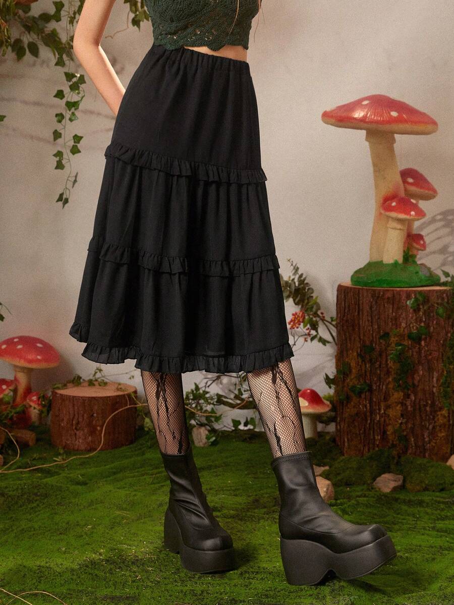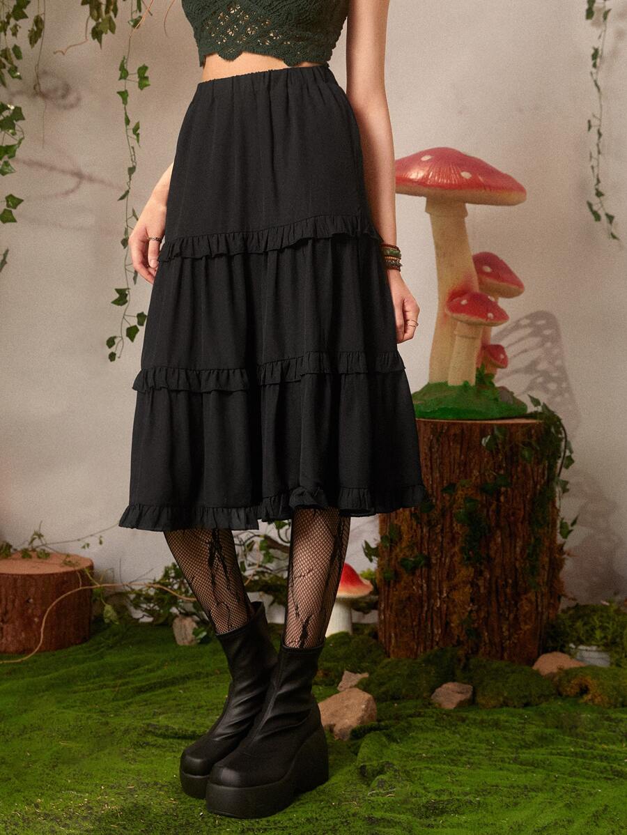 Fairycore Falda unicolor ribete fruncido bajo con fruncido