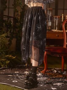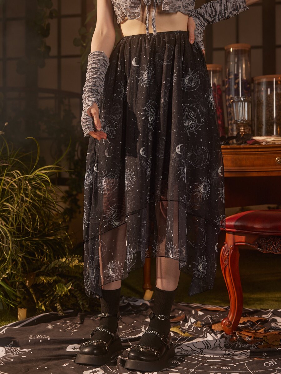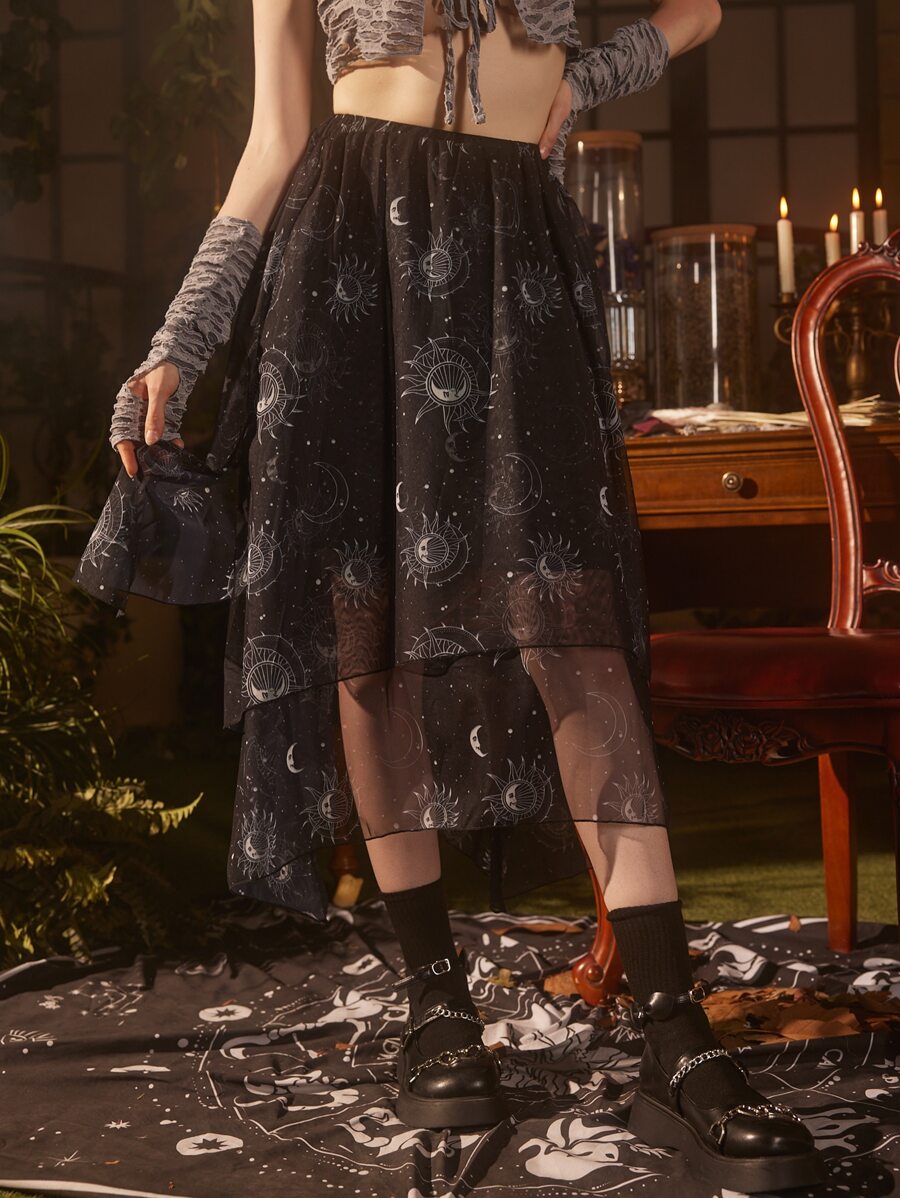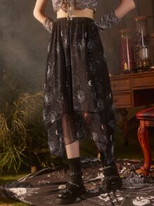 Fairycore Falda con estampado de sol y luna bajo asimétrico
