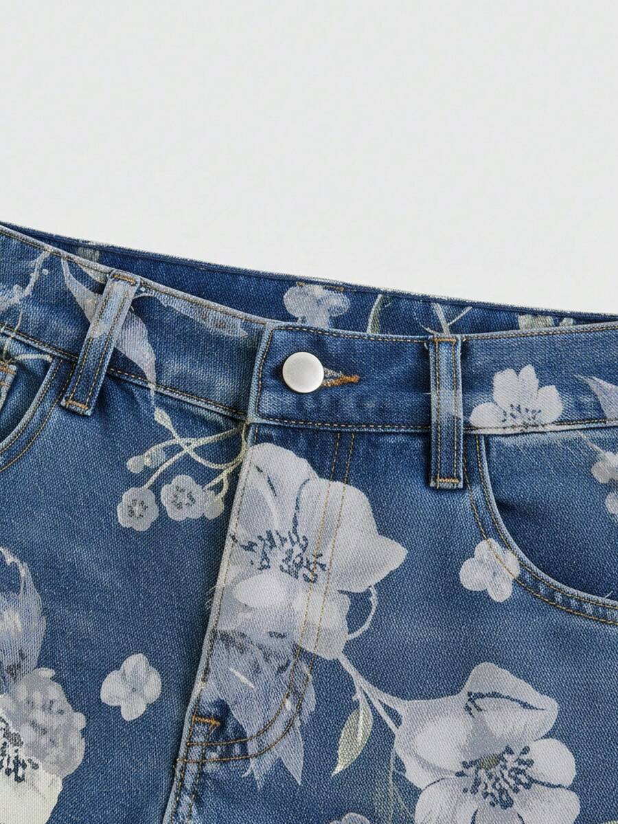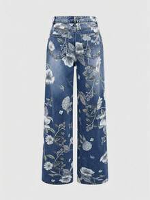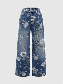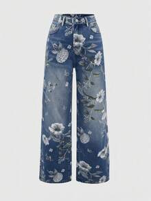 Fairycore Jeans de pierna ancha y suelta con estampado floral vintage para mujeres
