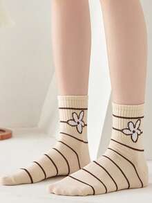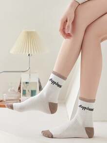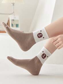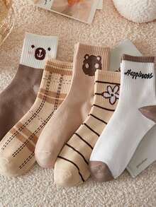 Kawaii Mujer 5 pares Calcetines de tripulación con estampado de oso de dibujos animados y letra
