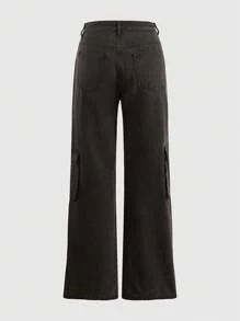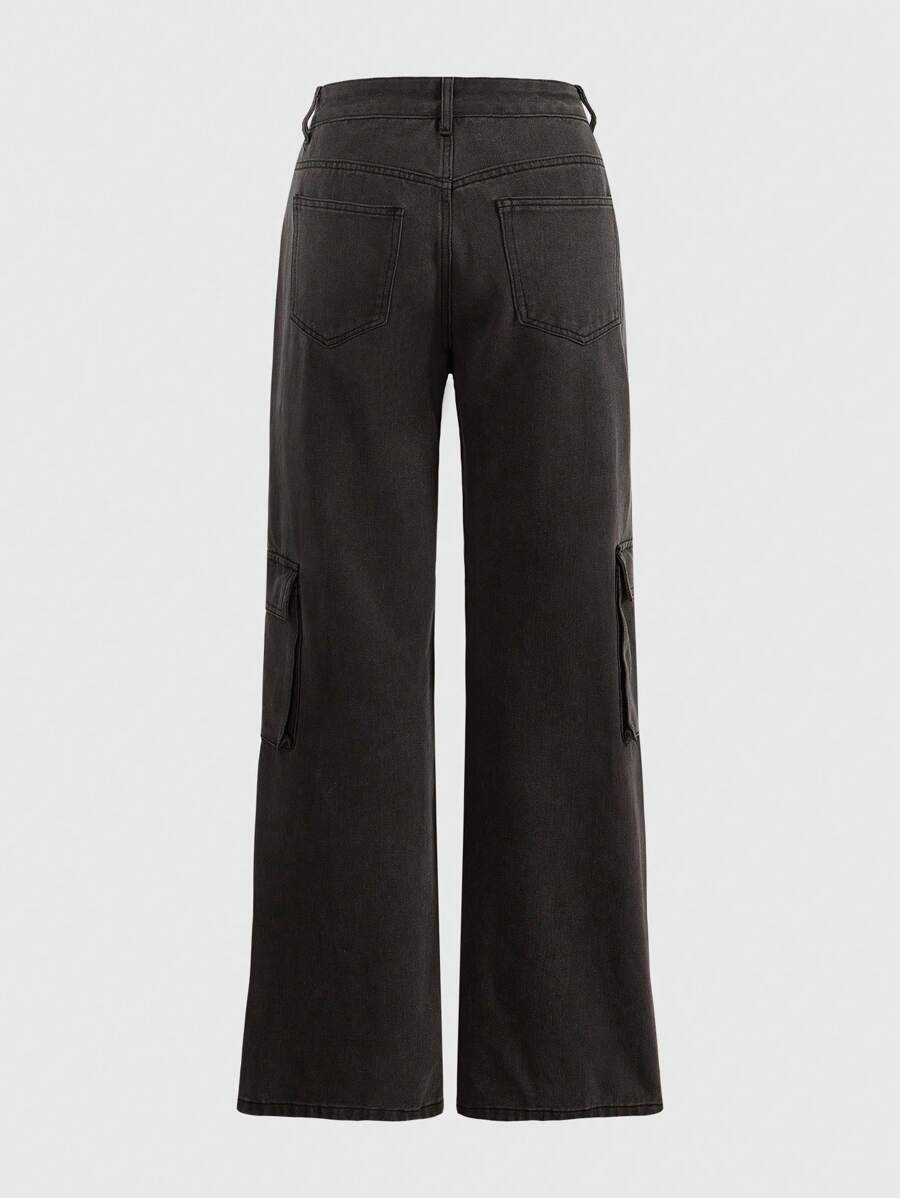 Fairycore Jeans cargo con estrella con parche con bolsillo con solapa