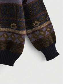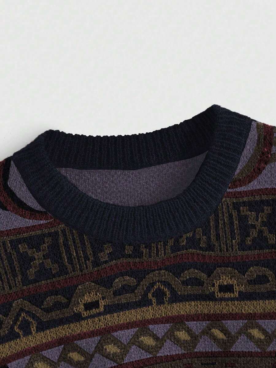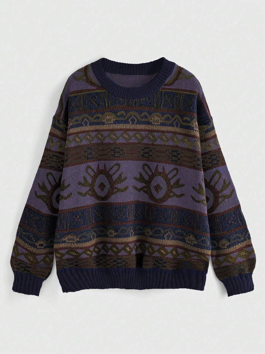 Fairycore Suéter casual de manga larga con cuello redondo y hombros caídos, con patrón geométrico, para mujer de talla grande, para otoño e invierno