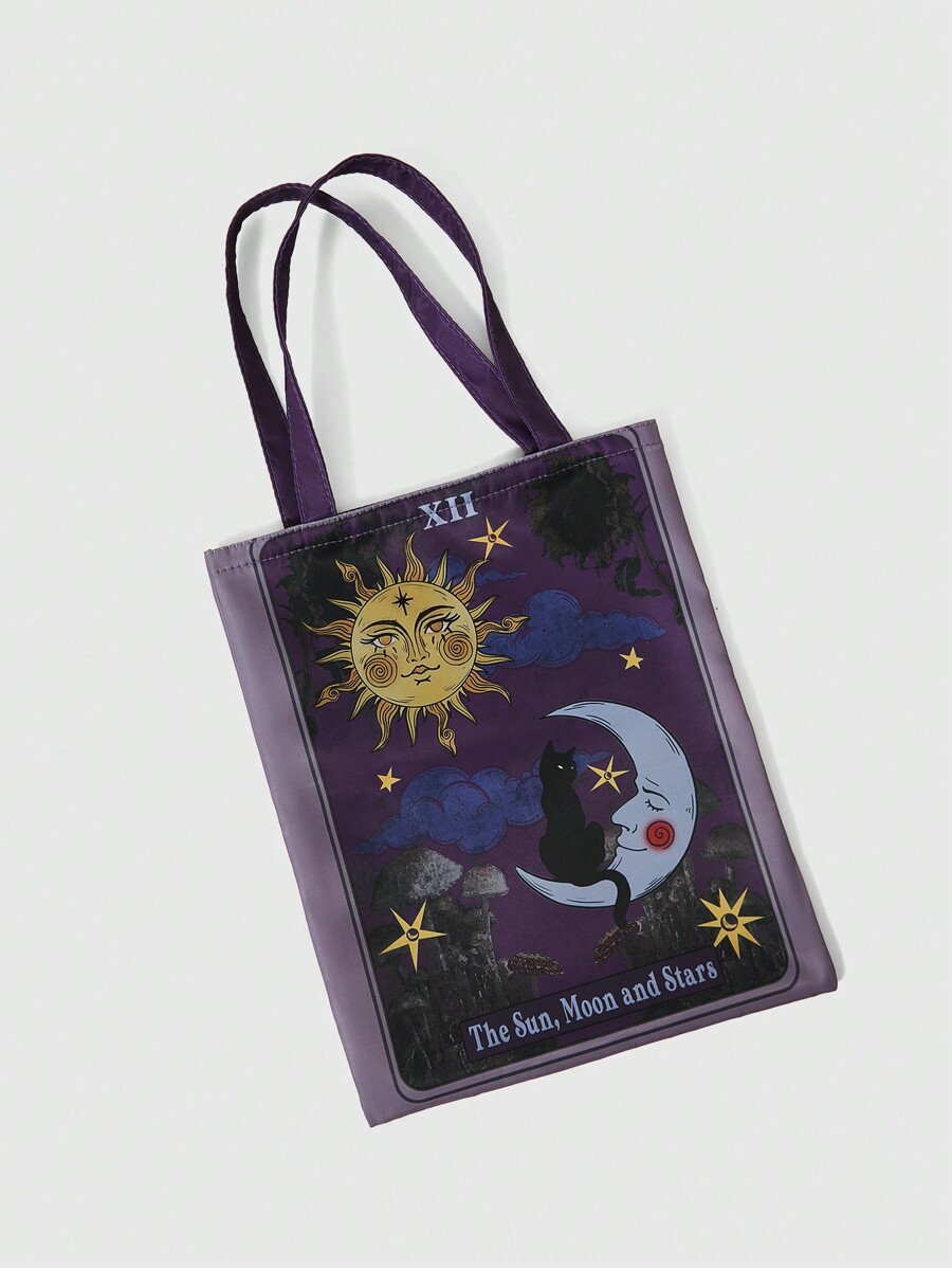 Fairycore Bolso De Mujer Con Estampado Lunar Y Gato Negro Versátil Y De Moda
