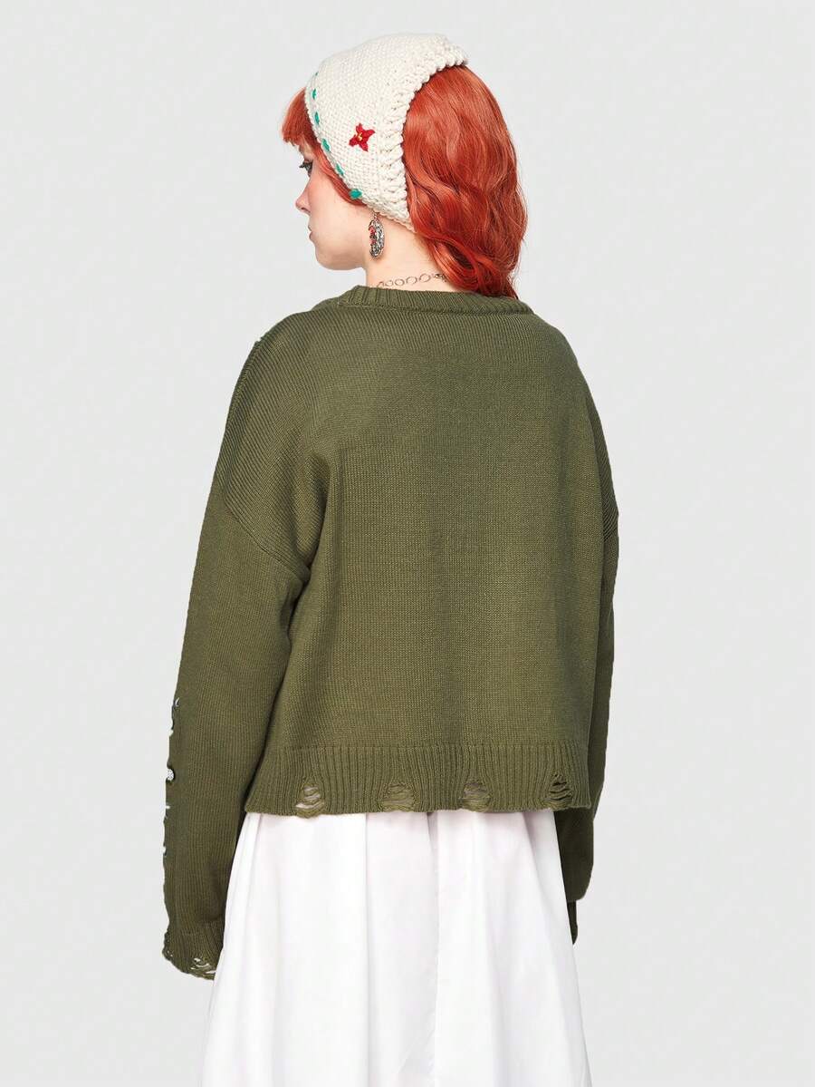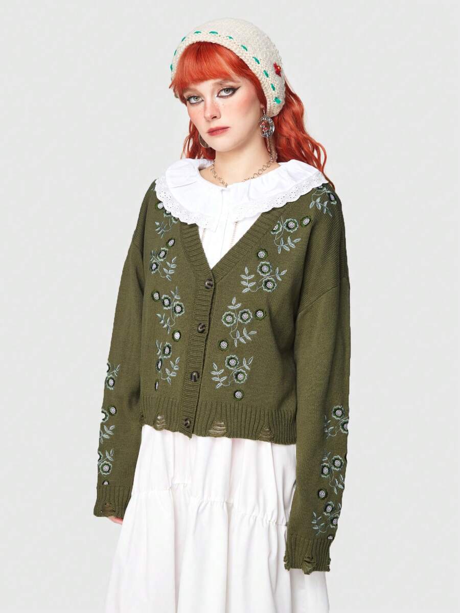 Fairycore Cárdigan Con Hombros Caídos Bordado De Flores Para Mujer