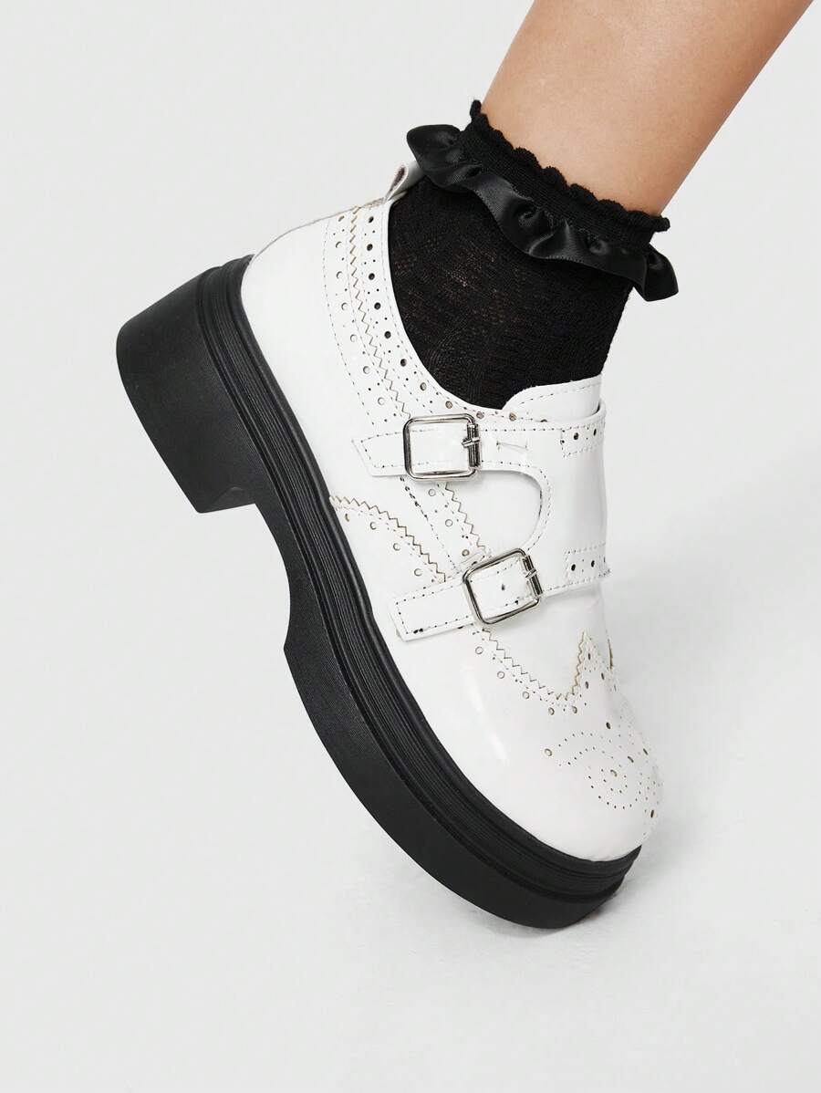 Fairycore Zapatos de mujer estilo gótico punk rock de plataforma con puntera cerrada, zapatillas Oxford vintage brogue blancas de tacón alto y suela gruesa
