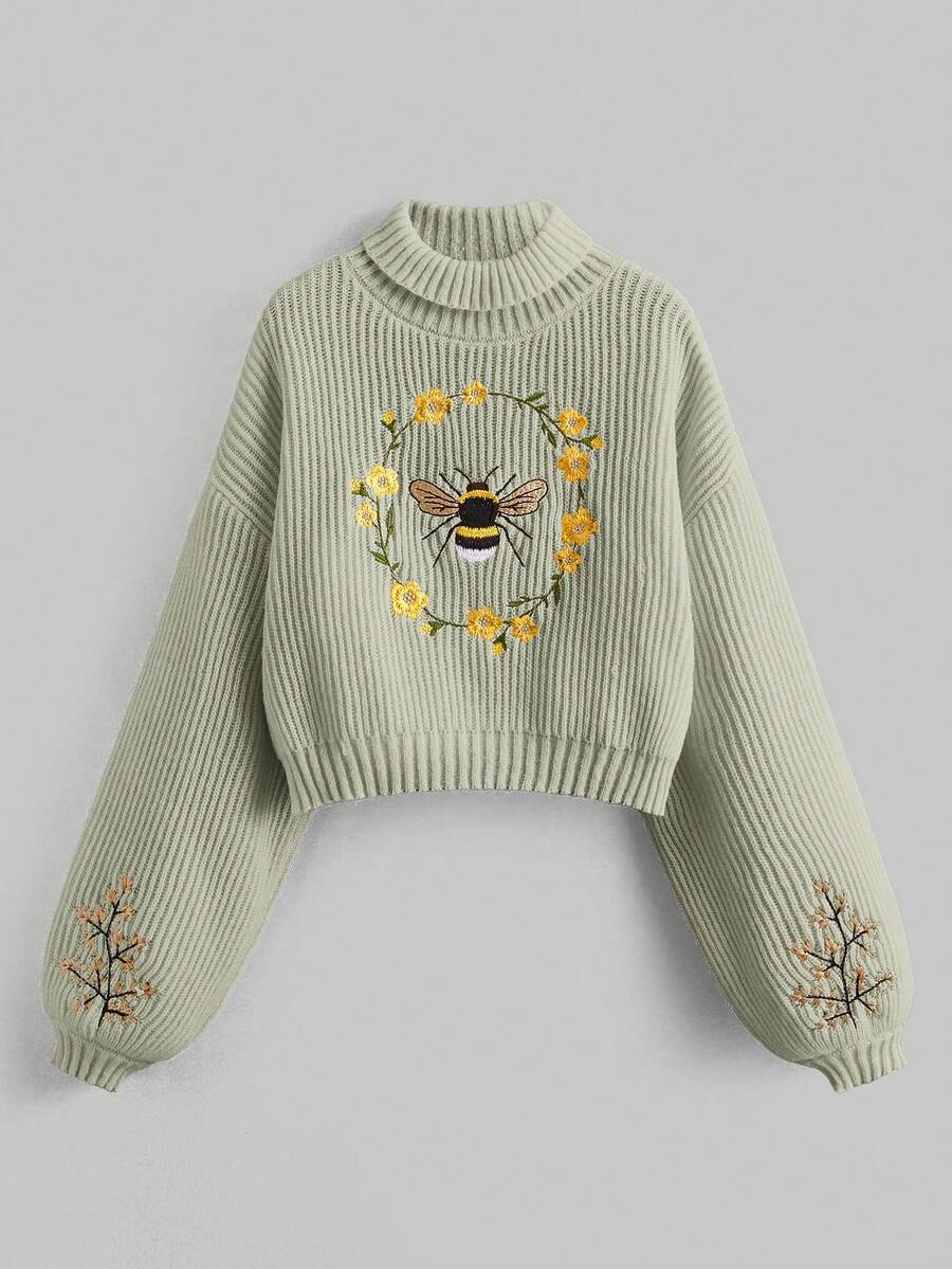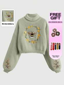 Fairycore Suéter casual de manga larga con decoración bordada para mujer