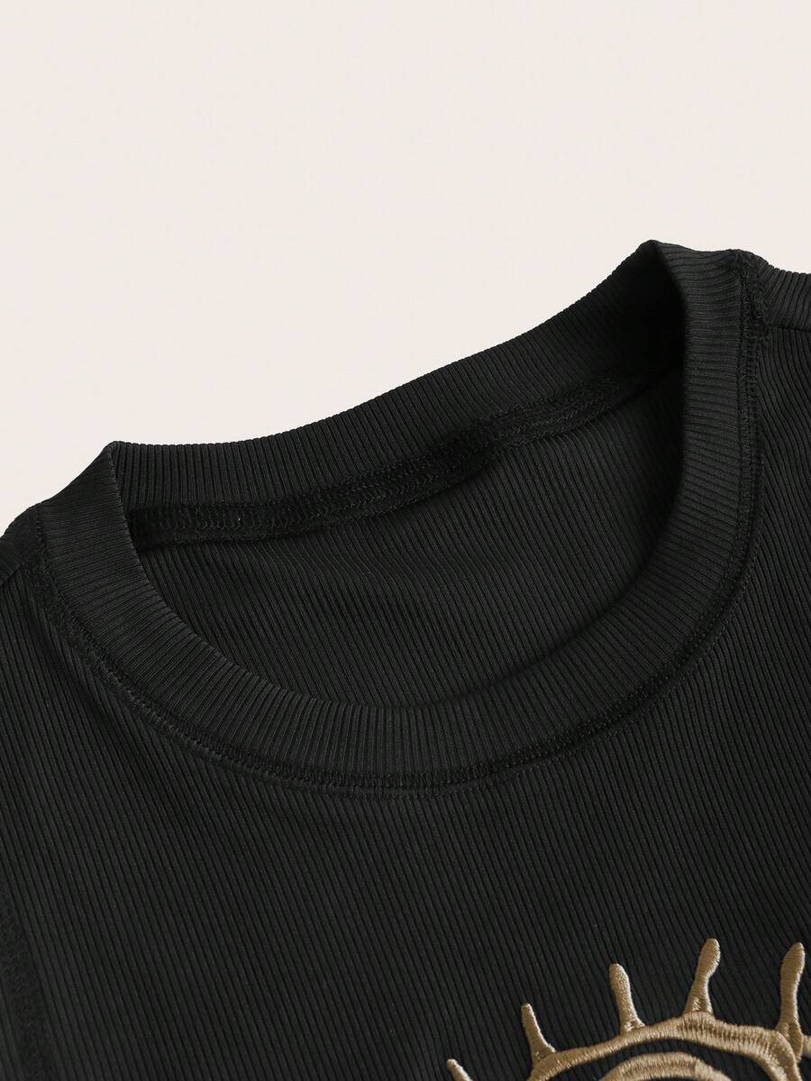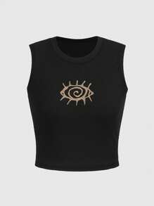 Fairycore Camiseta de tirantes con bordado de ojo, camiseta de manga casual de cuello redondo para mujer