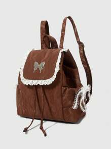 Fairycore Mochila de mujer de color marrón con parches, bordados y decoración de moño metálico