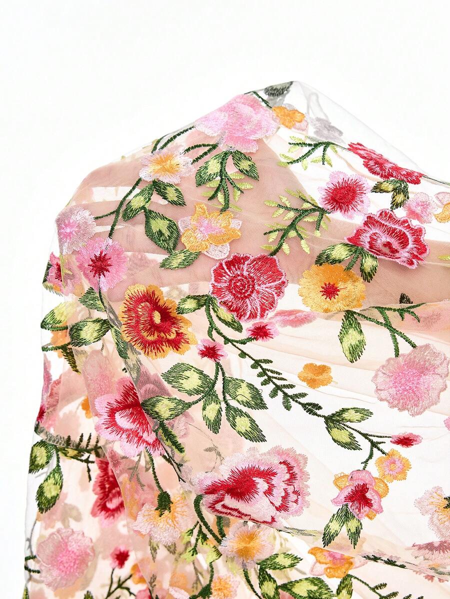 Fairycore Blusa transparente con bordado floral estilo retro, ideal para boda, jardín o festival de música