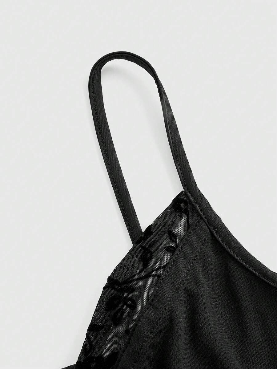 Fairycore Blusa de tirantes para mujer con malla contrastante, ribete de encaje decorado con moño
