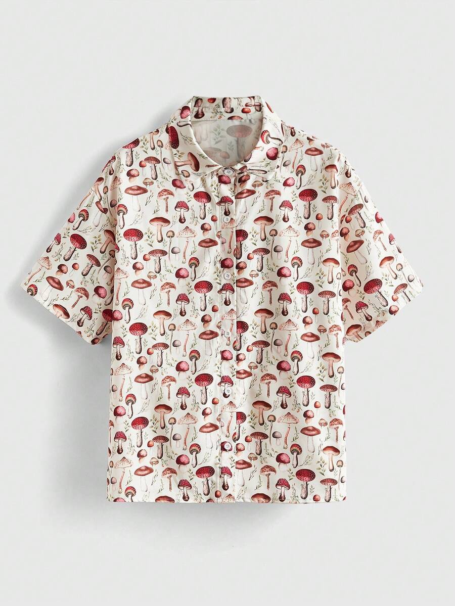 Fairycore Camisa Con Patrón De Setas Para Mujer