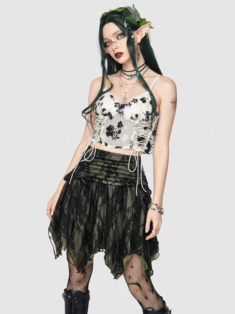 Fairycore Falda De Encaje Y Patchwork Para Mujer Con Dobladillo Asimétrico