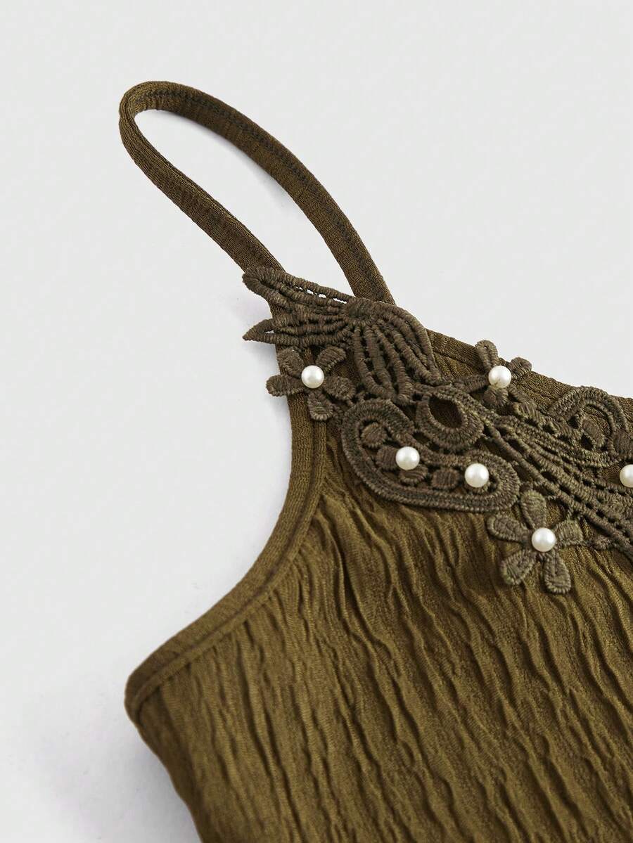 Fairycore Top De Encaje De Camisola Con Perlas Y Cuentas Para Mujeres
