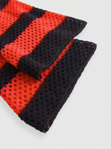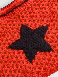 Fairycore Suéter corto de mujer con manga larga, estampado de rayas y diseño calado en forma de pentágono