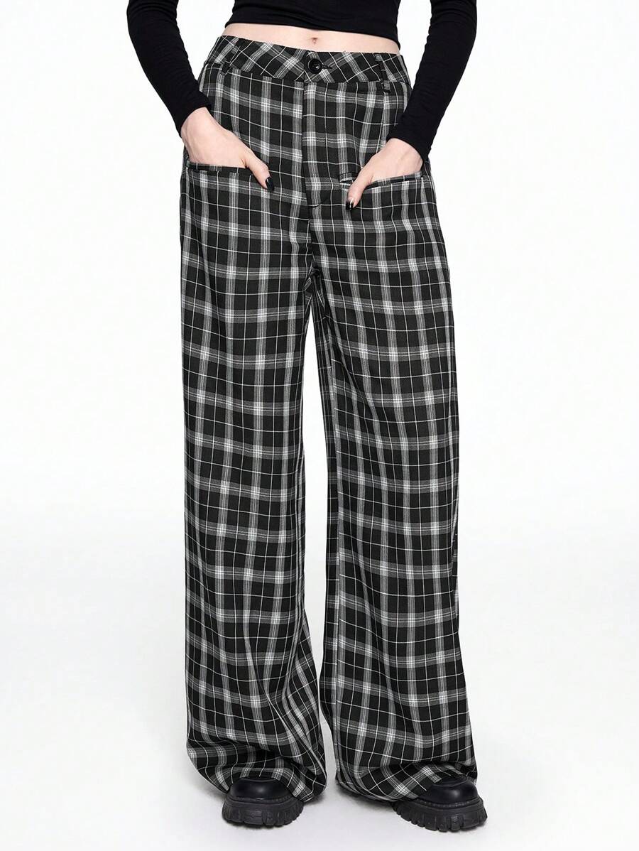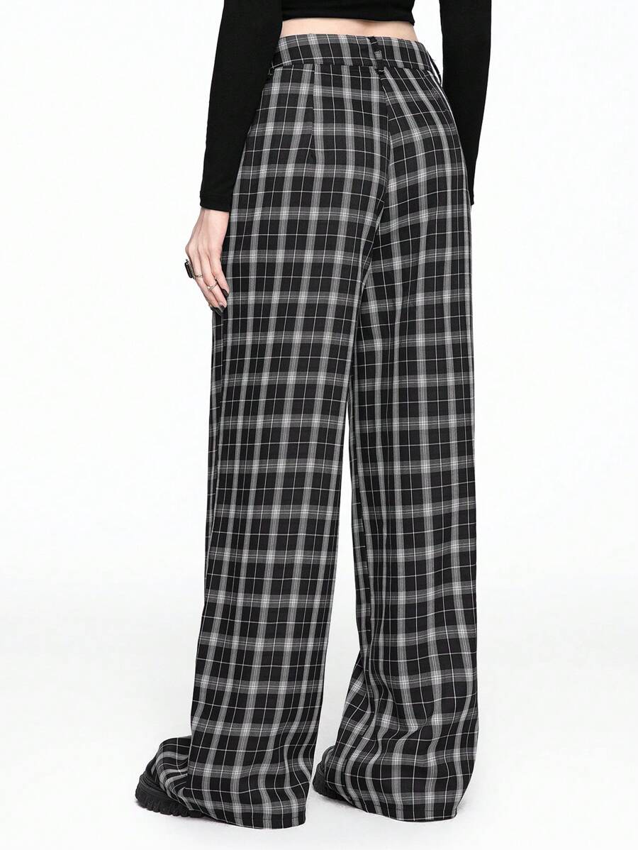 Fairycore Pantalones casuales anchos de pierna ancha a cuadros para mujer