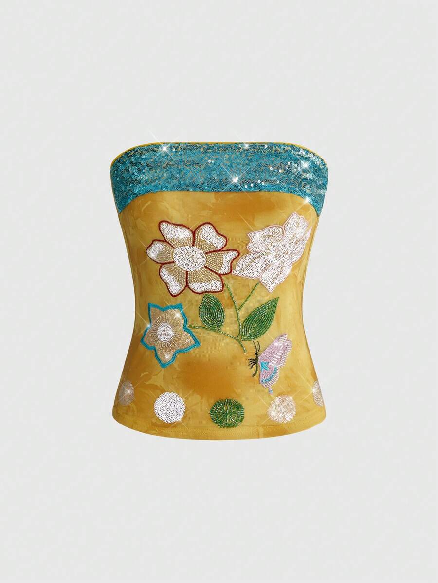Fairycore Top bandeau con decoración de lentejuelas bordadas en tela de estilo de vacaciones para mujer