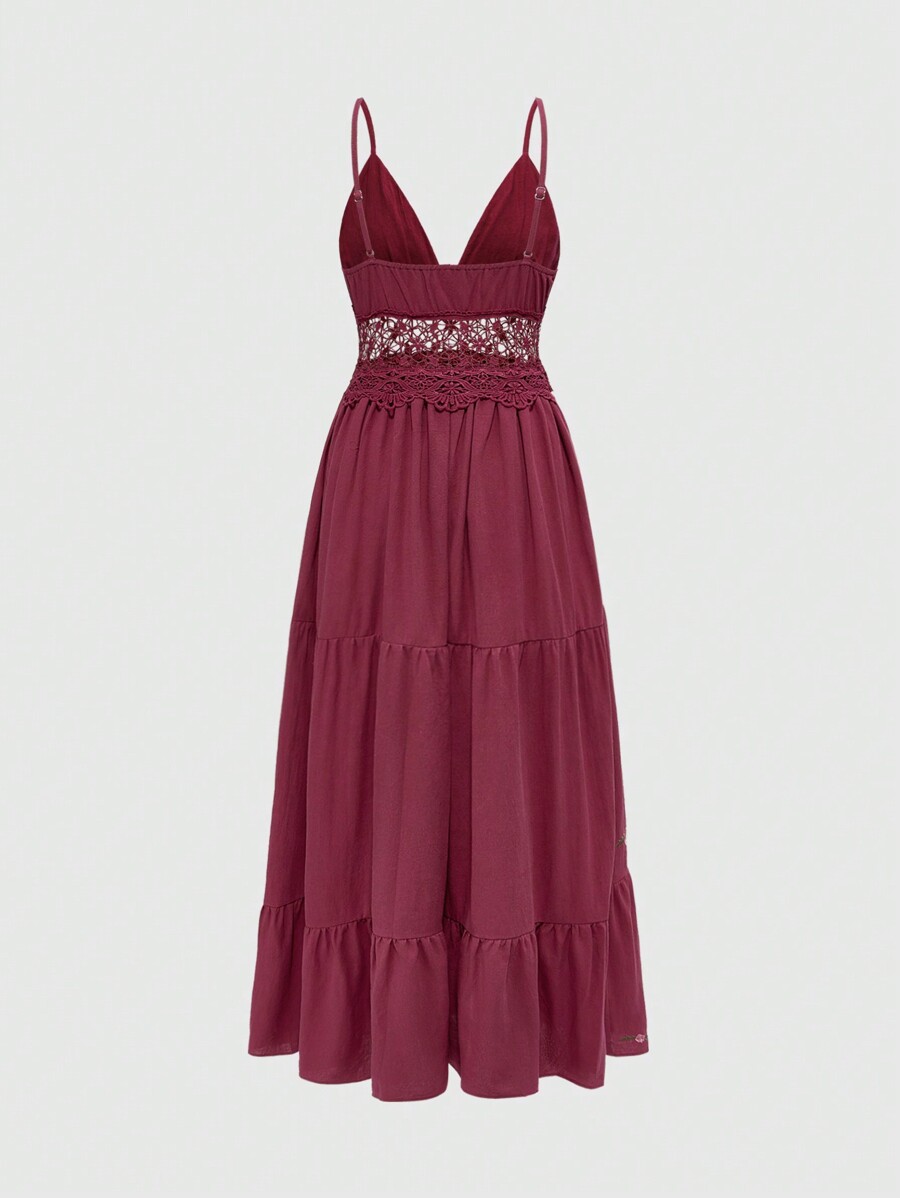 Fairycore Vestido largo con bordado floral vintage, con capas y ribete de encaje, vestido de lino