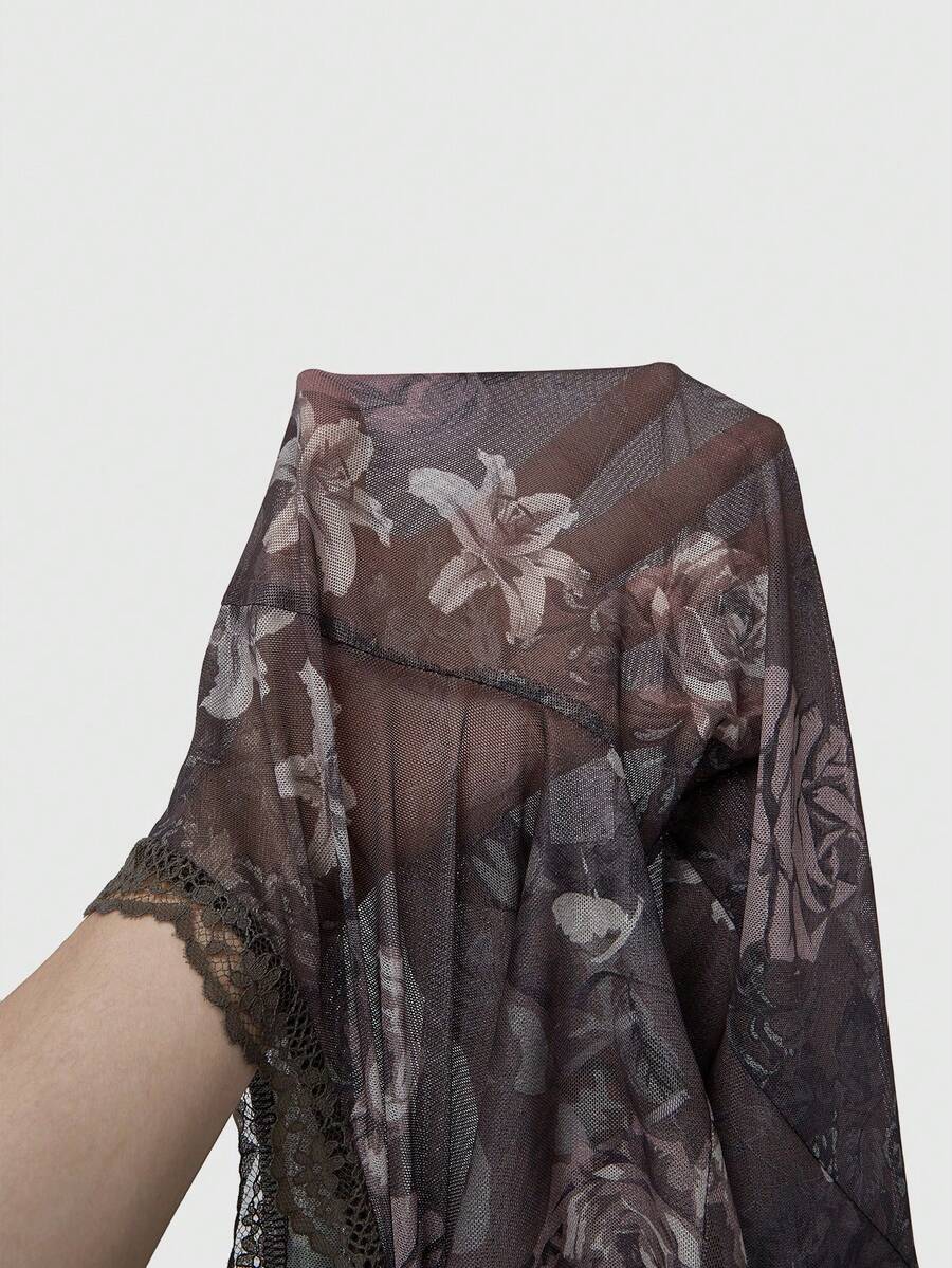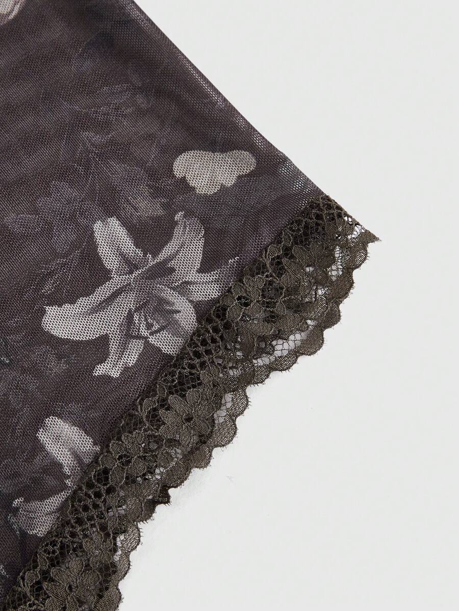 Fairycore Top corto de manga acampanada con encaje y diseño floral vintage para mujer, con cordones delanteros, verano