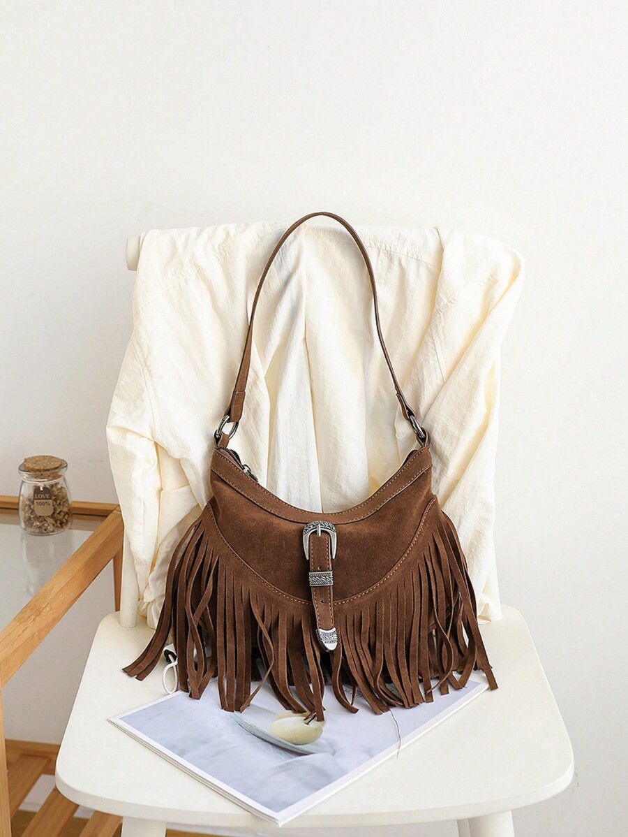 Fairycore Bolso de mujer mate vintage con diseño de flecos, bolso de hombro/cruzado multifuncional y sencillo