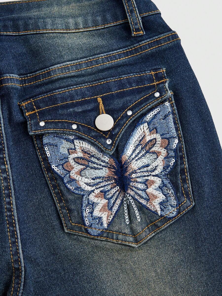 Fairycore Jeans con efecto elástico ajustado y acampanado, decorados con bordado de mariposa y cristales, estilo vintage para mujer